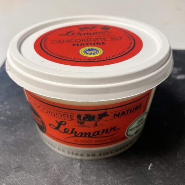 La cancoillotte LEHMANN est un fromage fondu au goût fin et savoureux. Elle contient du lait écrémé caillé, de l’eau, du beurre, du sel et des sels de fonte pour l’onctuosité. Des ingrédients d’origine naturelle parfument les cancoillottes aromatisées.